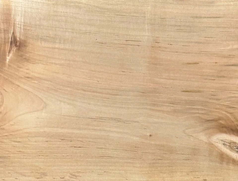 Materials: maple wood, purple heart wood inlays, screws and table top clips